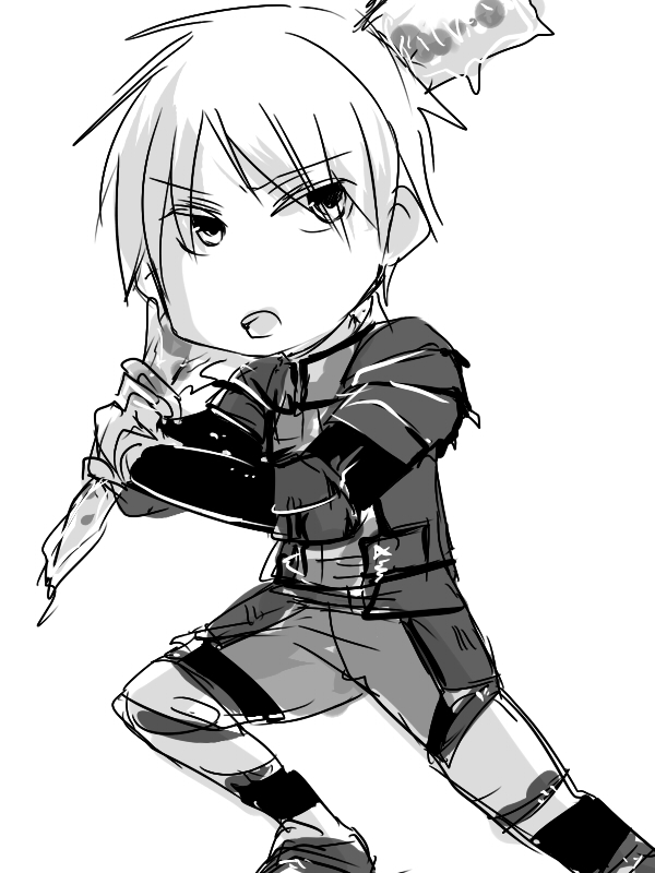 サムライで描いてたらただのみゆみゆファンだった(鉢巻とハッピ風がだめだった)ので戦士にジョブチェンジの宮地さん。ティーダが持ってた剣をうろ覚えで描こうとした。でも剣でなくても釘バットでもいい。